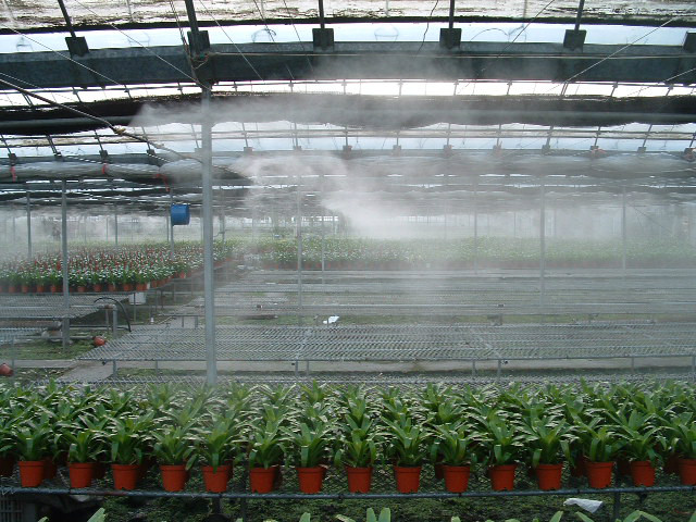 溫室大棚中常用的***是噴霧系統(tǒng),推薦在溫室內(nèi)間距5至10平方米安裝1個(gè)噴頭,水壓要足夠高(大于500psi),這樣可以使水珠更為細(xì)密,在水珠達(dá)到葉片之前***霧化了,為了防止噴嘴堵塞,水中不應(yīng)有任何雜質(zhì),所以需要進(jìn)行水處理(過濾和凈化)此外噴嘴的質(zhì)量要求比較高,以經(jīng)受得住水的高壓,相對于風(fēng)機(jī)濕簾系統(tǒng),噴霧系統(tǒng)的噪音比較小,使用面積均勻。